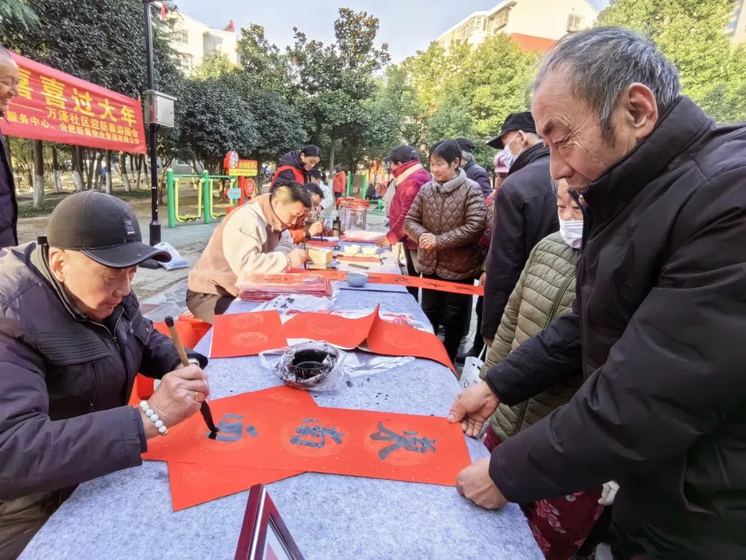 书法爱好者在蜀山经开区万泽社区为居民写春联。