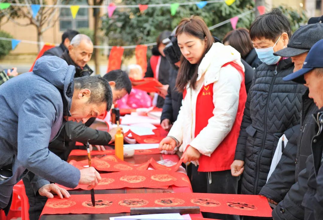 小庙镇段冲村、袁中社区在西城兰苑小区广场组织开展“墨香浓情迎新年” “义写春联祝福”活动,邀请书法爱好者为乡亲们义写春联祝福,营造浓厚的迎新年气氛。