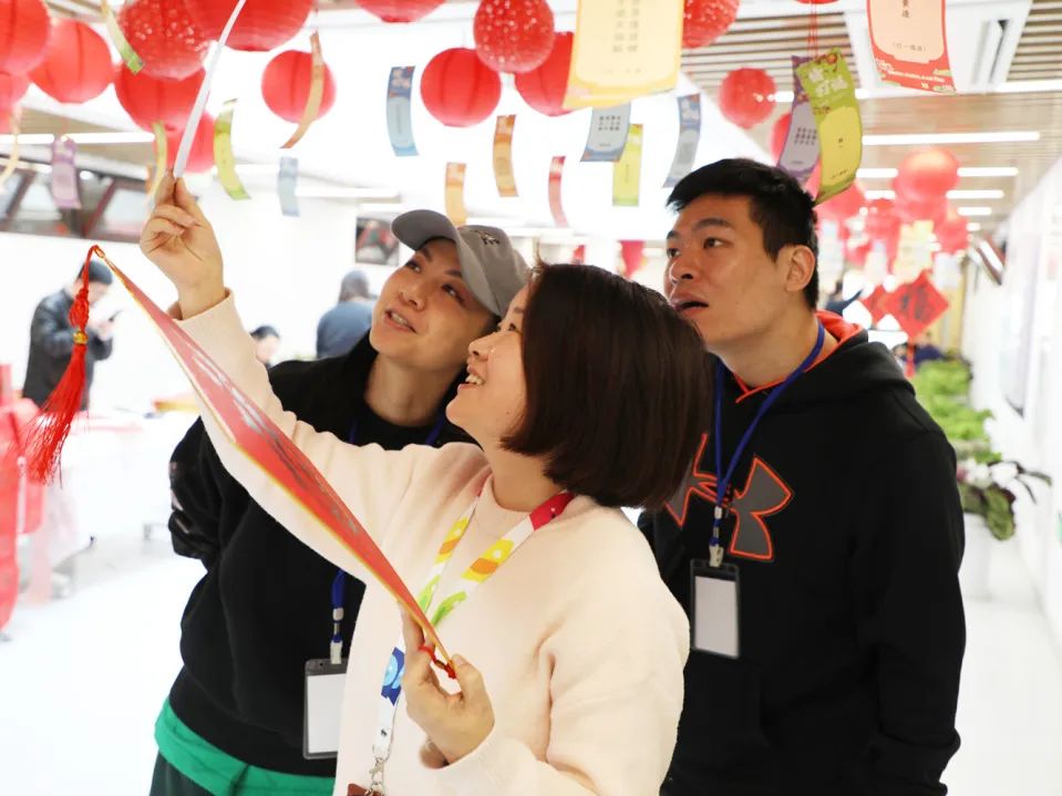 “如果你猜到了答案,你可以把卡片剪下来,得到一份礼物。”在灯笼上解谜语也是现场的热点。活动为员工精心准备了100个谜语和丰富的奖品。在工作人员的指导下,大家开动脑筋,争相猜测,为节日增添了喜庆的气氛。