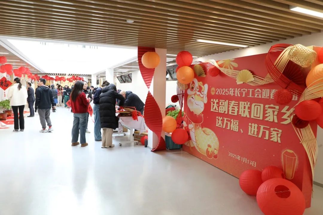 随着春节的临近,年味逐渐在长宁的大街小巷蔓延开来。1月17日,长宁区行政服务中心上演了一场由长宁区总工会主办、长宁区工人文化宫承办的“送副春联回老家,送万福,进万家”迎春活动。