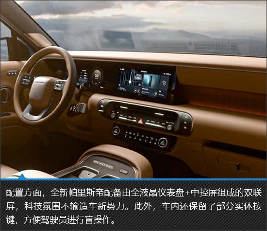 新款帕里斯帝的内饰并没有迎合国内消费者的喜好,配备了各种大尺寸的“彩电”,而是采用了常见的双屏设计,保留了很多物理按钮。可见主要是为了满足北美市场的需求。