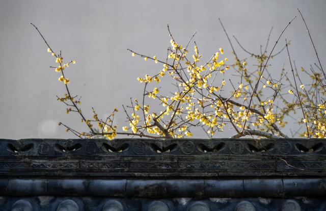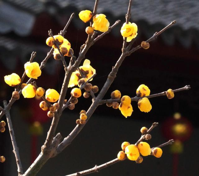 环境安静,蜡梅绽放