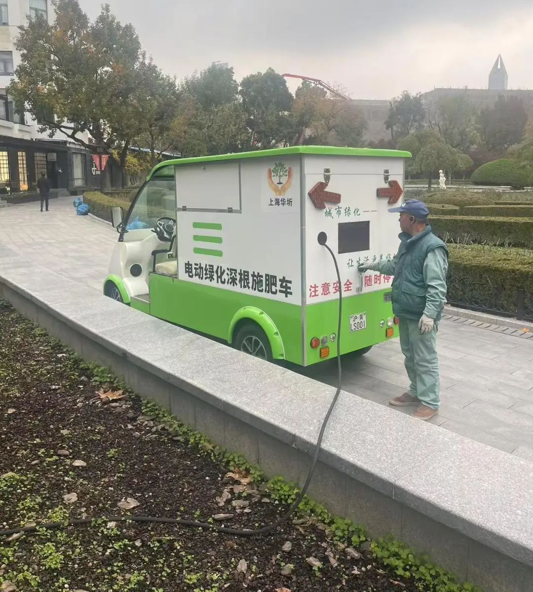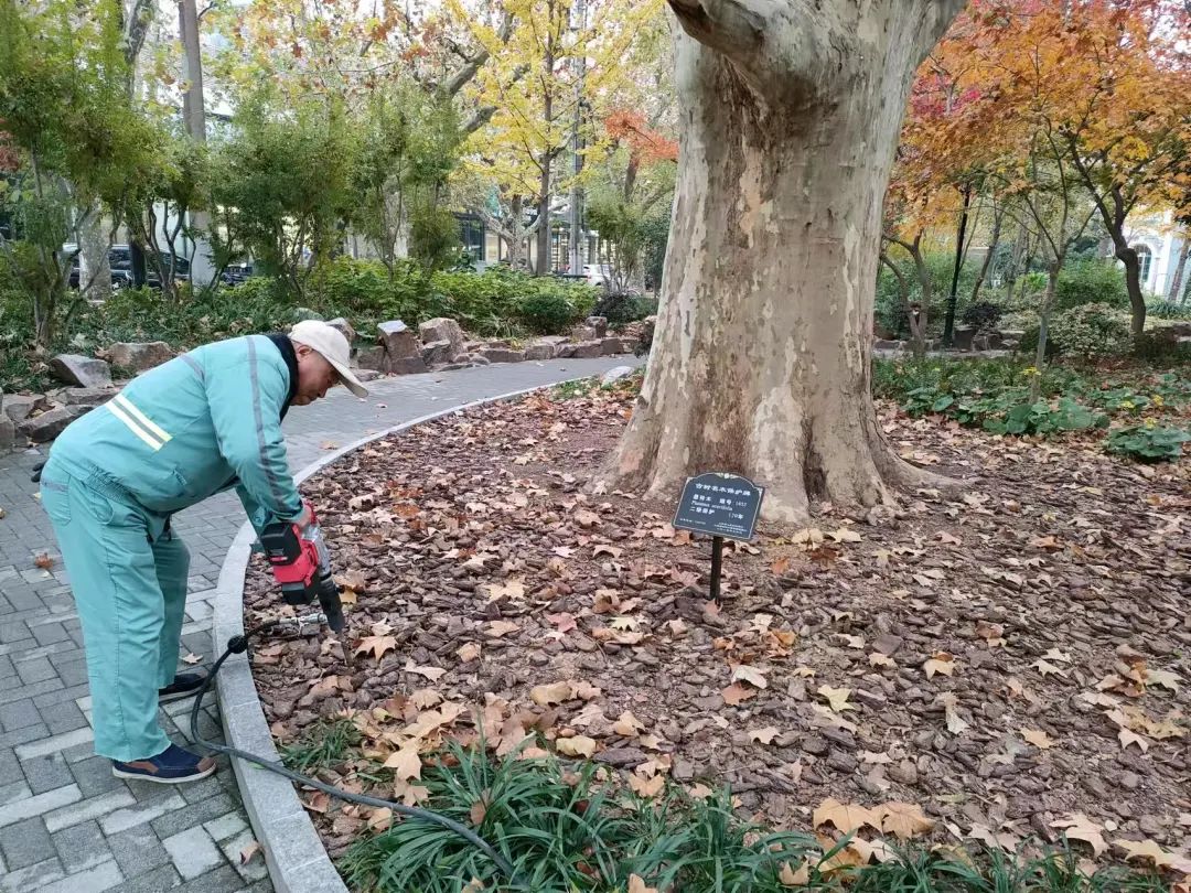 春天,夏天,秋天,冬天,冬天是一年中收敛和封闭的阶段。近年来,上海冬季气温发生了很大变化。为了抵御极端低温天气,公园管理层还提前做好草垫的包扎和铺设,以保持树木和地温,采取防寒防冻措施和应急预案。与此同时,今年公园还新购买了电动绿化深根肥车,用于深根肥料,方便快捷,有利于促进肥料效果的吸收。