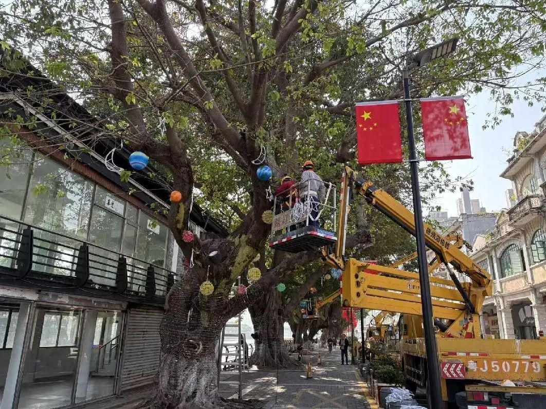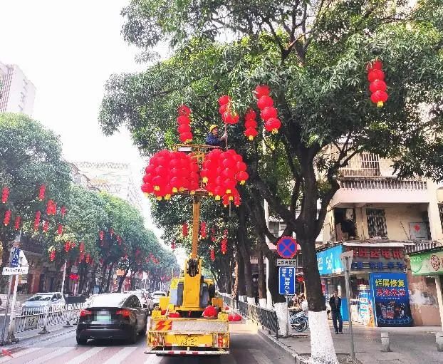 “今年,我们计划在堤中路、白沙大道、建设路、船厂跨江桥等地方悬挂482面国旗;在龙湾路、跃进路、白石大道等9条路灯杆上悬挂512串灯笼,在江侨路、发展大道、东华路、港口路等24条路上悬挂21500串灯笼;长堤面貌街周边悬挂600多盏灯。在过去的几天里,我们的市政工人已经加班加点,在主次干道上悬挂红灯笼,预计在1月21日之前完成所有路段的红灯笼悬挂。下一步,我们计划在市区21个重要节点、公园布置花卉氛围,邀请市民前来参观打卡。”蓬江区城市管理与综合执法局有关负责人表示。