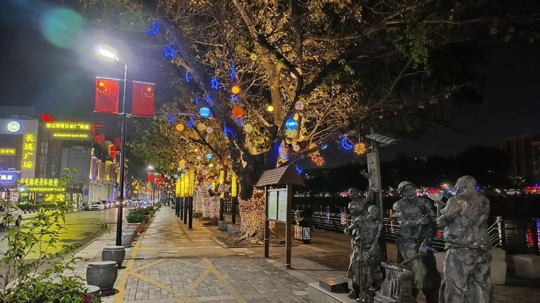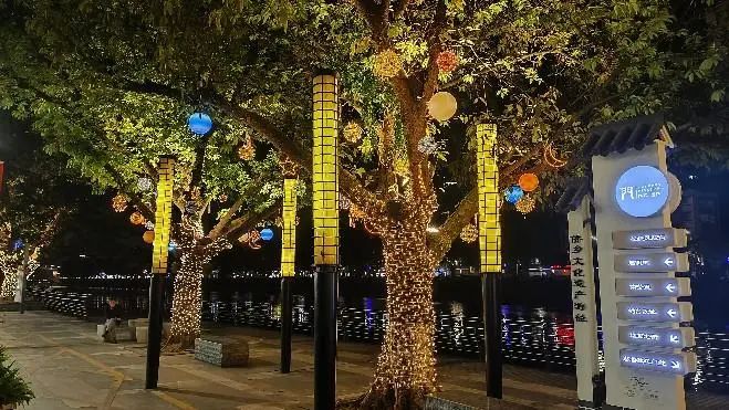 为了进一步提升长堤面貌街周边的“年味”,丰富市民和游客在老街区“打卡”的体验,该局还对长堤江门河沿岸的树木进行了照明和美化。