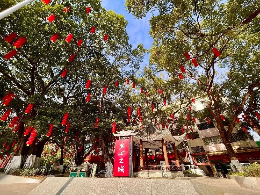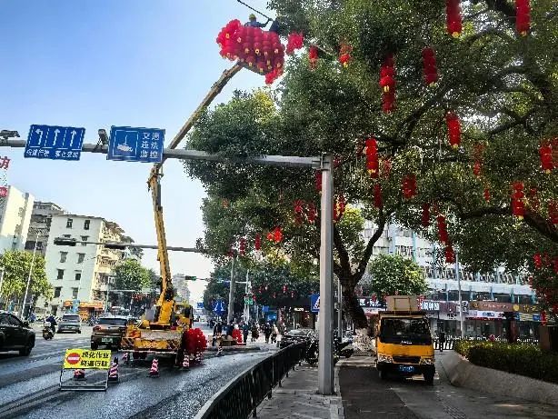 在我国春节申遗成功后,2025年乙巳蛇年是第一个世界“非遗”版春节。为了营造热烈欢乐祥和的节日氛围,吸引更多的人留在蓬江过春节,蓬江区城市管理和综合执法局连日来精心策划和提前部署,按照“节俭快乐”的原则,在城市街道和公园广场上紧锣密鼓地悬挂灯笼、国旗和照明,让广大人民和乘客感受到浓浓的“年味”。