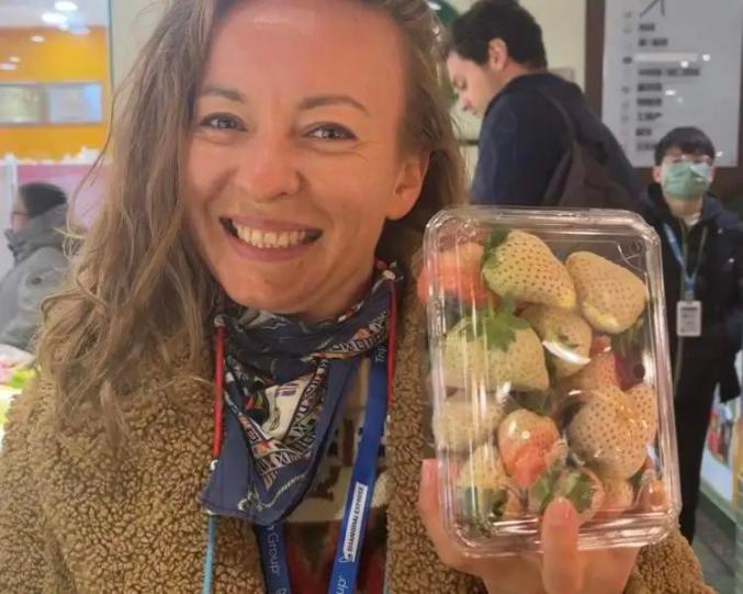Valeria出生在俄罗斯,现在生活在西班牙。一进菜市场,她就被水果摊吸引住了。尝了一个白草莓后,她立即下了订单,拿出手机扫码支付。