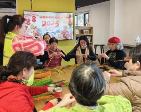 党中心的年轻人热情洋溢,手把手地教大家制作绒花。 “柿子如意”。五颜六色的绒线穿过指尖,不一会儿,一朵朵栩栩如生的绒花绽放,代表着 "事事顺心"" 美好的含义,为新的一年赢得一个好的颜色。老人和孩子都沉浸在这种有趣的手工制作中,感受着传统工艺的独特魅力。