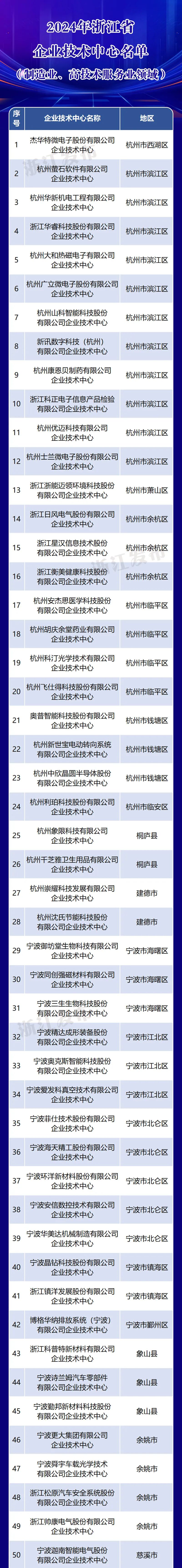 近日,省经济和信息化厅等4个部门公布了2024年浙江省企业技术中心在制造业和高科技服务业领域的名单,温州市共有22家企业技术中心。此外,我们同意温州工正智能设备有限公司企业技术中心和浙江工达环保科技有限公司企业技术中心的主体变更。全名单↓↓