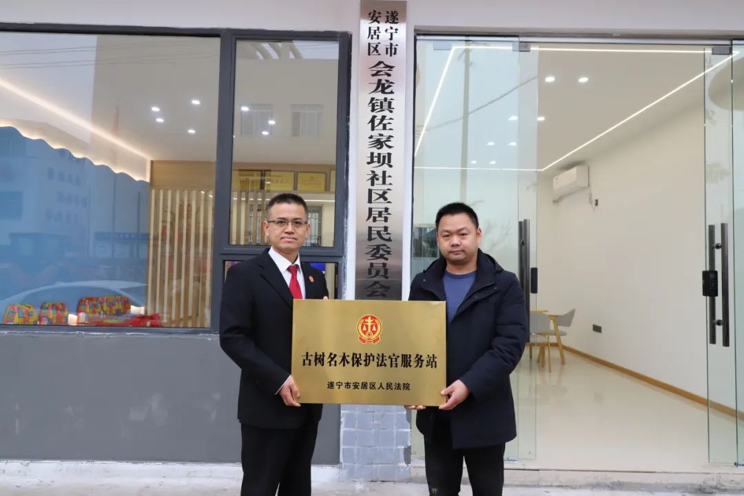 随后,安居法院在会龙镇佐家坝社区设立了古树名木保护法官服务站,旨在整合各方资源,依托法官服务点参与,进一步为辖区老树建立“司法保护盾”。