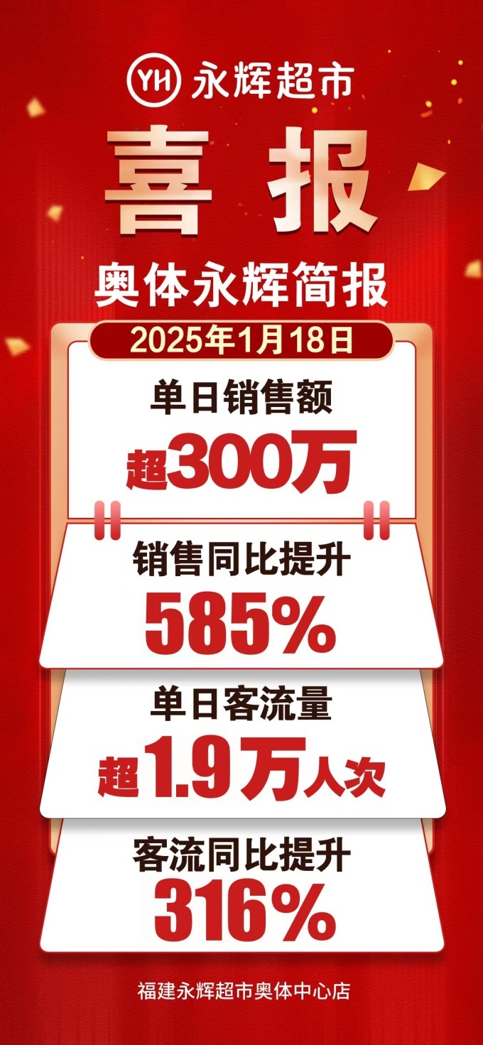 超过300万,永辉福州奥体店创调单日销售额最高。