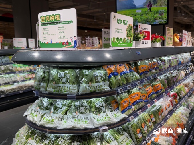 永辉超市还与福建现代农业服务集团合作打造品牌,通过与福州供销社下属新金东农场的合作,为客户提供新鲜优质的蔬菜,通过农产品直接供应。在店里,你可以看到包装好的新鲜青菜,如柳叶空心菜、红苋菜、上海青菜、钙菜、藜蒿等。,都整齐地展示在货架上,颜色鲜艳,叶子饱满,包装精美,统一标注了“嗨福菜”的商标。