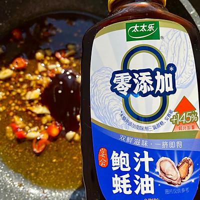 5、加入一勺太太乐零加入鲍汁耗油调味。