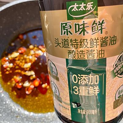 6、加入一勺新鲜的酱油调味料,太太乐原味鲜头道特别新鲜。