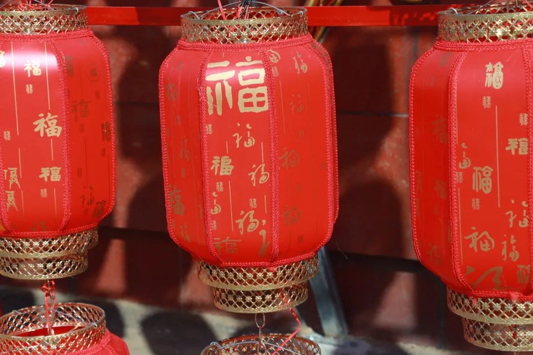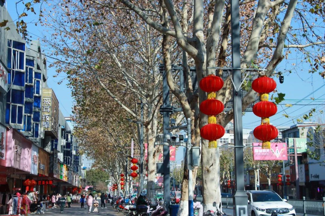 从街头到街尾,一排排大红灯笼串,整条街道洋溢着热闹的过年气氛。