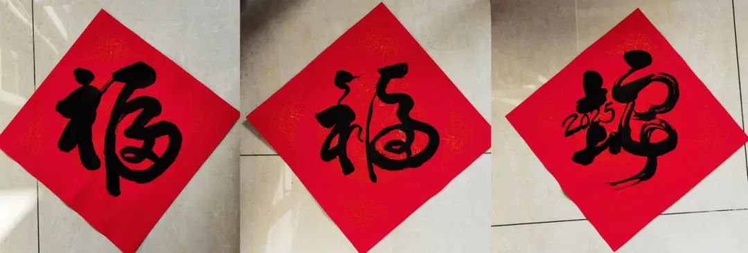 同时,他还以独特的趣味为笔,将灵动的蛇年元素融入到传统福字中,演变出新的福字。