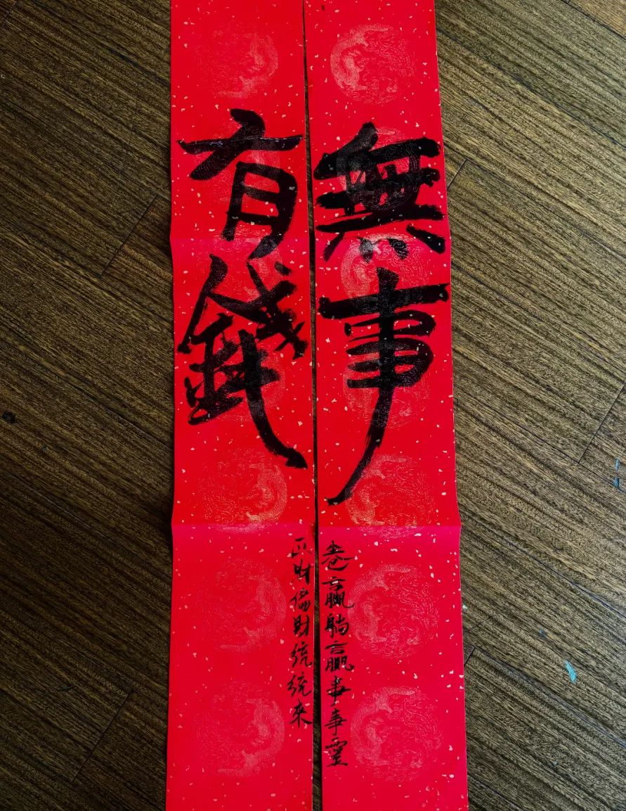 春联似乎总是红色背景上的黑色字符,对仗工整。