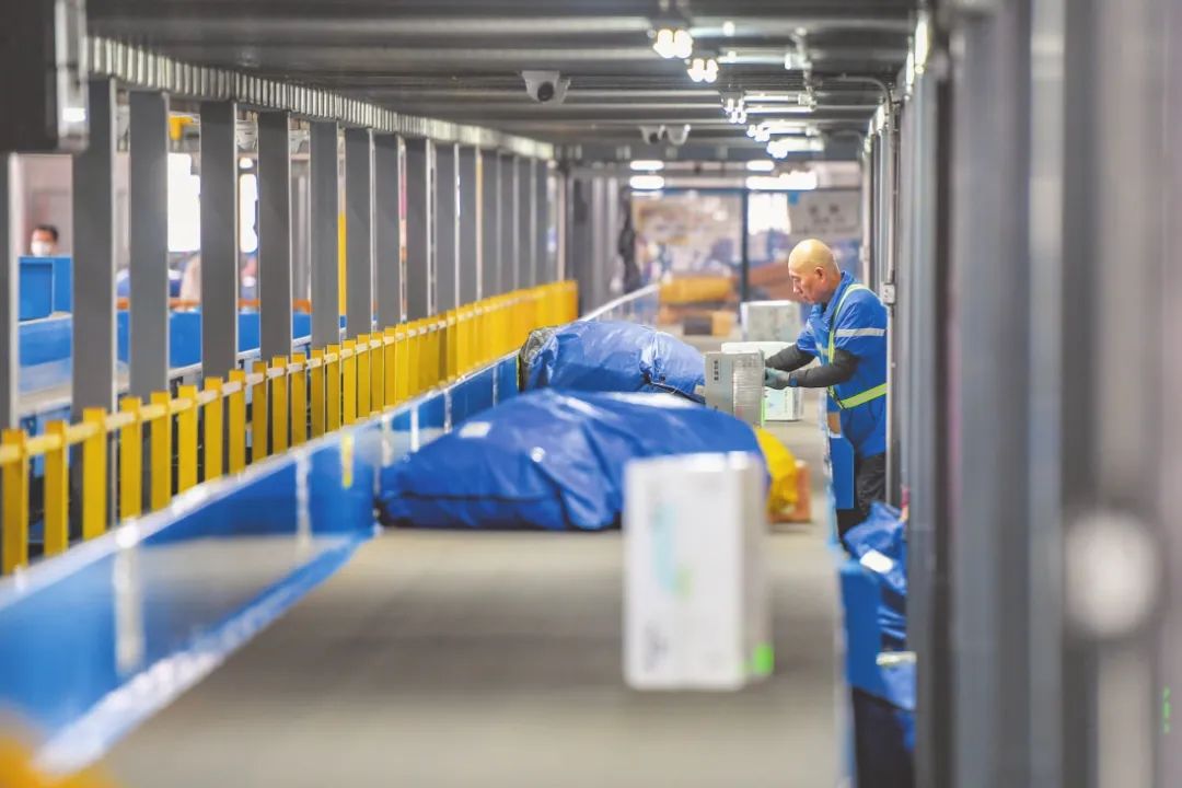 中通快递海南总部和位于江东新区临空经济区的航空物流枢纽基地项目近日投入运营。该基地配备了一套矩阵自动分拣设备、两套环形自动分拣设备和其他约300条分拣线。自动分拣设备有效提高了快递的分拣能力。快递从岛上到客户只需要2到4个小时。随着春节的临近,每天最大处理量达到110万件。