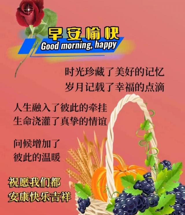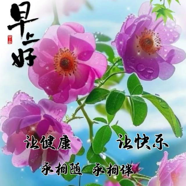 早上好,祝朋友们:每天早上都快乐,每天都快乐有趣;每个月,紫色来自东方,每年春风都很自豪;一路花开,一生健康相依!早上好,吉祥!