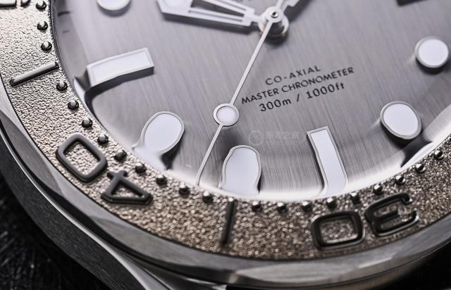 此外,表圈的装饰效果与之前的北京冬奥会和 Nekton 海洋研究的两个特殊版本的表圈保持一致。表圈底层的钛金属用于颗粒磨砂装饰,质地极其细腻出众,不可避免地会与锤出的霜金联系在一起,表圈的数字刻度也经过打磨和抛光。这种表圈设计直接与常规海马相匹配 300 米饭,包括普通间金海马的陶瓷表圈,都有明显的不同。