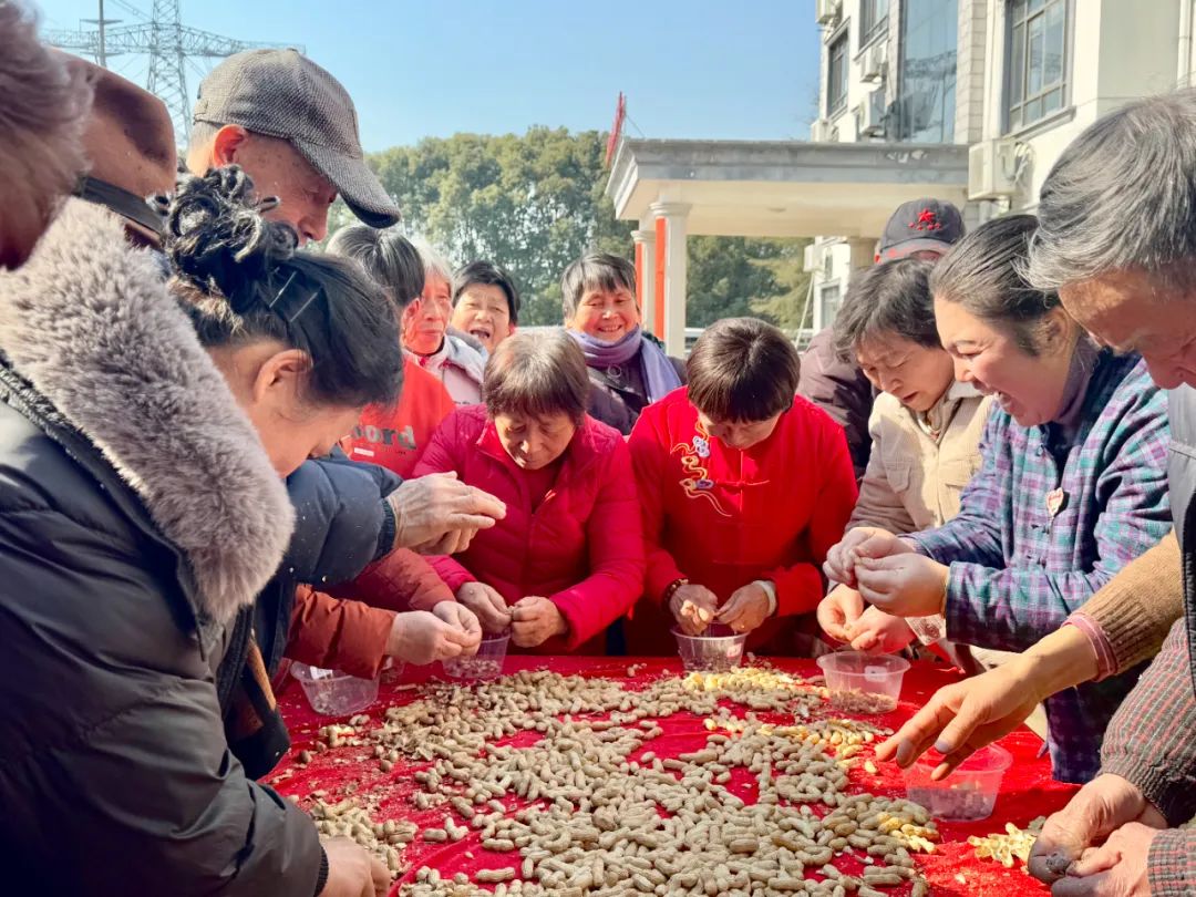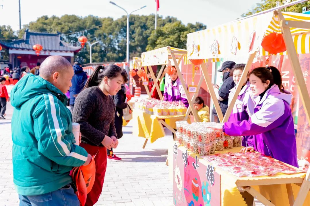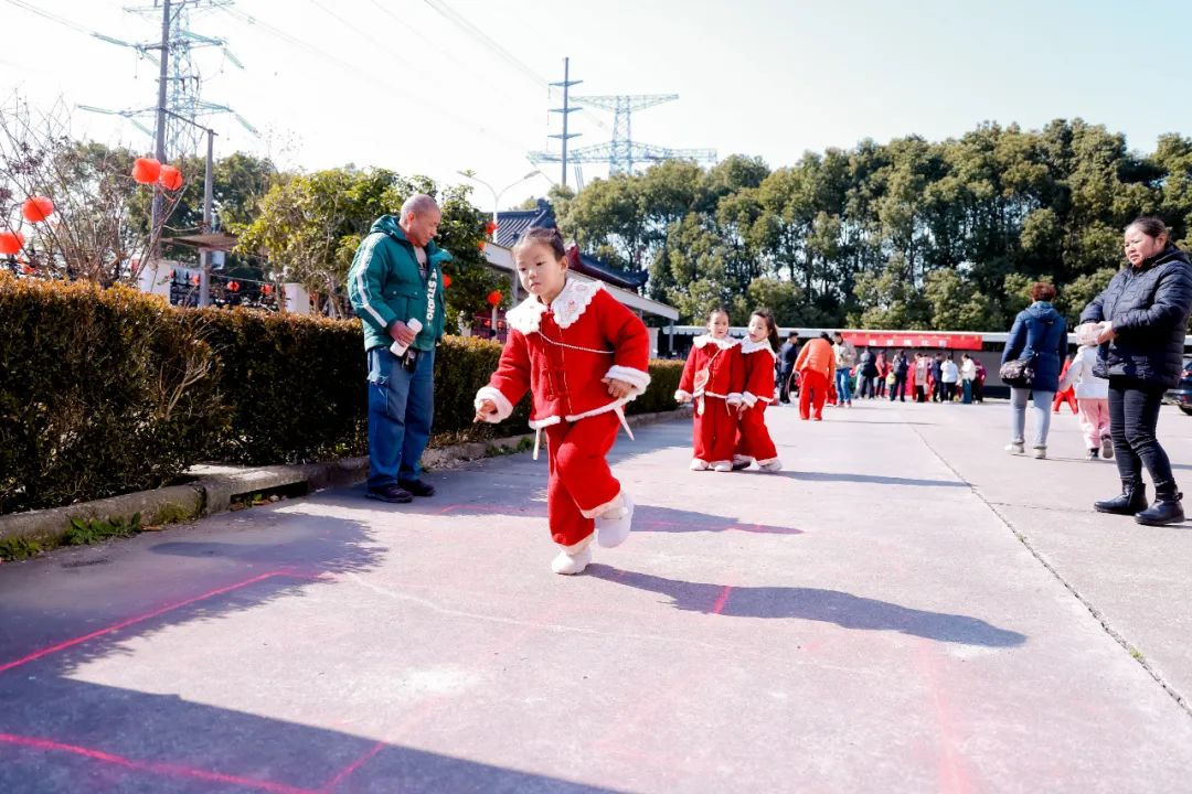 除丰富的表演节目外,各种场外趣味活动同样受欢迎。新年市场上,各美食摊位纷纷开张,叶榭软糕、青龙饺、张泽羊肉等地方特产一一亮相,吸引了不少市民停留品尝。踢毽子、滚铁环、跳房子等民间游戏很受孩子们的欢迎。此外,搓麻绳、剥花生等农场比赛也是当天的鸣锣比赛。现场一个接一个,到处都是红火的年味和浓浓的烟火气息。