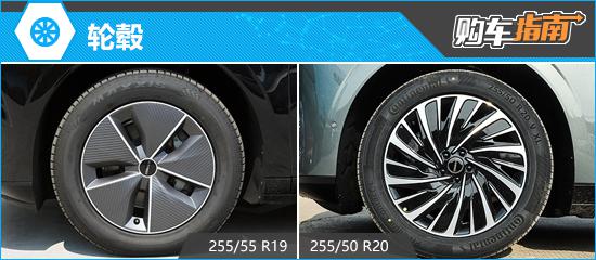 在轮毂方面,入门级车型配置 19 英尺式低风阻轮毂,匹配规格为 255/55 R19 轮胎,可选择 20 英尺轮毂。选择全新风格的中配和高配车型 20 英尺多辐轮毂,匹配规格为 255/50 R20 的轮胎。