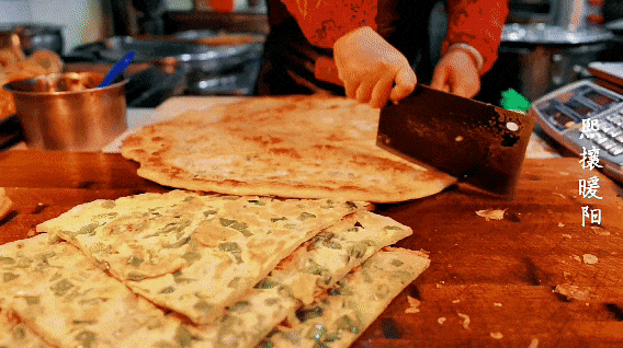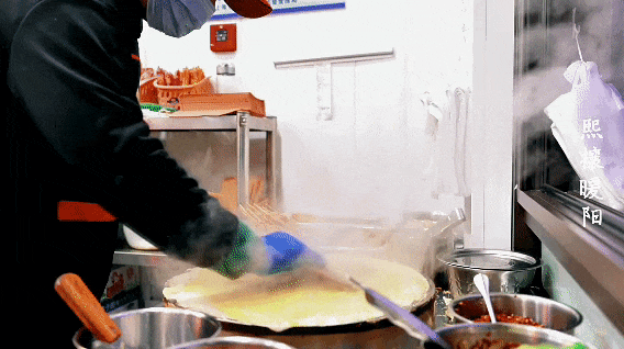 舀一勺浆,摊开一个蛋糕,打一个鸡蛋,撒上葱花和芝麻,然后刷上一层特制的酱料,热气腾腾的煎饼果子就出来了!“咔嚓” 一声,脆皮与软糯的内里交融在口中,这大口的满足也使生活嚼得更加丰富多彩。