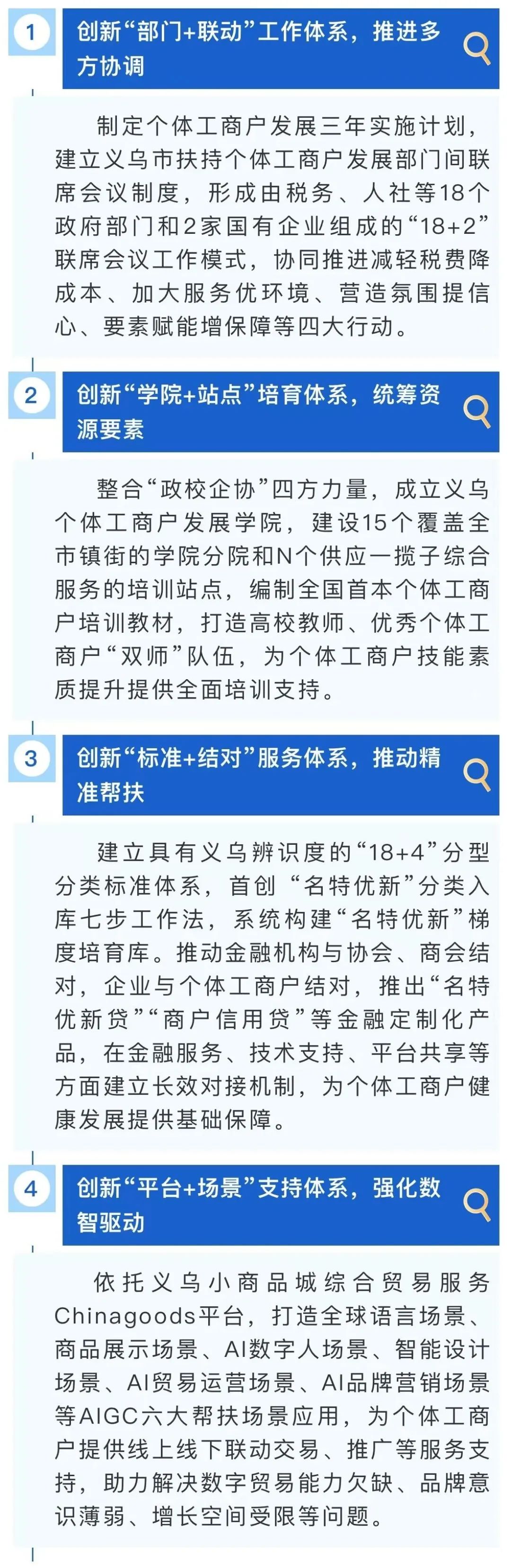 近年来,义乌继续实施《促进个体工商户发展条例》,创新工作、培训、服务、支持四大体系,让“小个人”产生“大能量”,促进个体经济高质量发展。