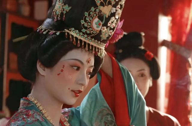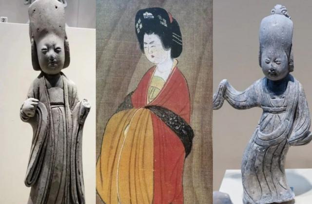 为什么眉毛对造型的影响如此之大?那我们就不得不说这个造型的魅力了。如果只是高髻,唐代的高髻数不胜数。峨髻是什么意思?峨是高耸的,高到比我们常见的高髻高。如果这么高,高处不可避免的会很冷。当时,通过享受来粉饰和平的氛围,夸张的妆容突出了贵族之间的流行。