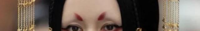 这种造型所展现的精髓就是短阔眉,短阔眉又短又密,像飞蛾的翅膀一样轻盈,末梢上扬,有一种无可争议的感觉。这种眉毛的优点是更有活力,往往需要扩大眉毛,减少额头的空白,增加妆容的重心,减少发型过大容易分散面部注意力的情况。电视剧在额头之间加花也有同样的效果,但是用柔软的柳眉或者中性的天然眉毛也很难撑起来。
