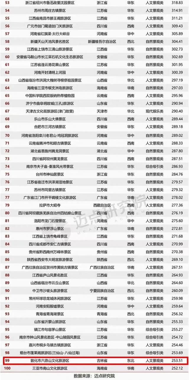 全国5A级景区百强吉林3地榜单!