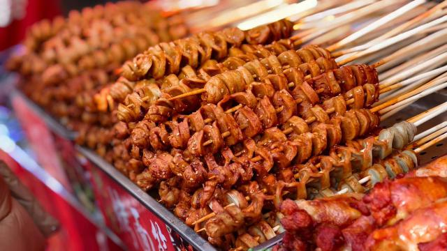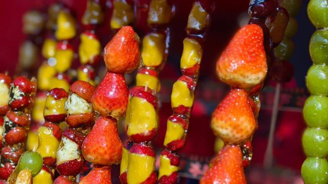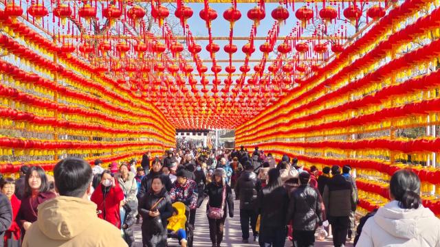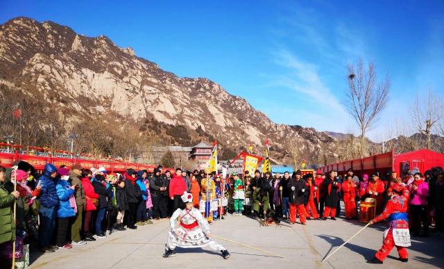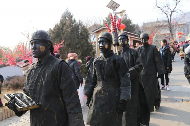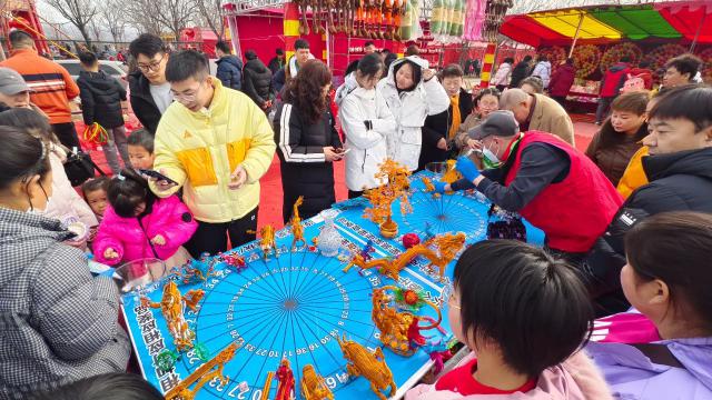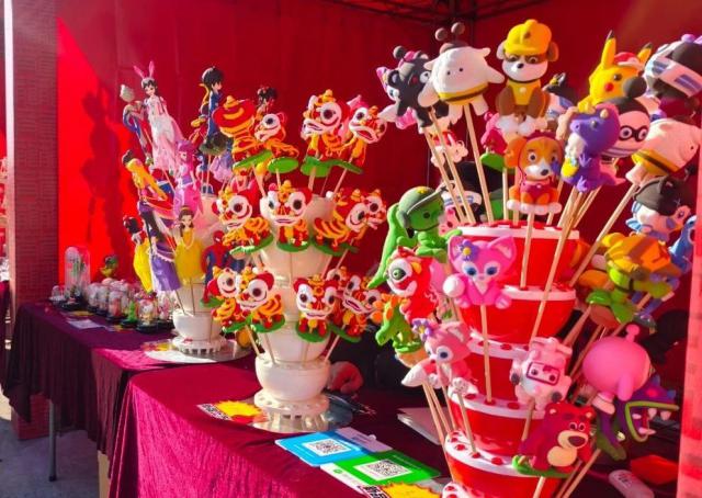非遗展示项目如秸秆扎刻、吹糖人等,