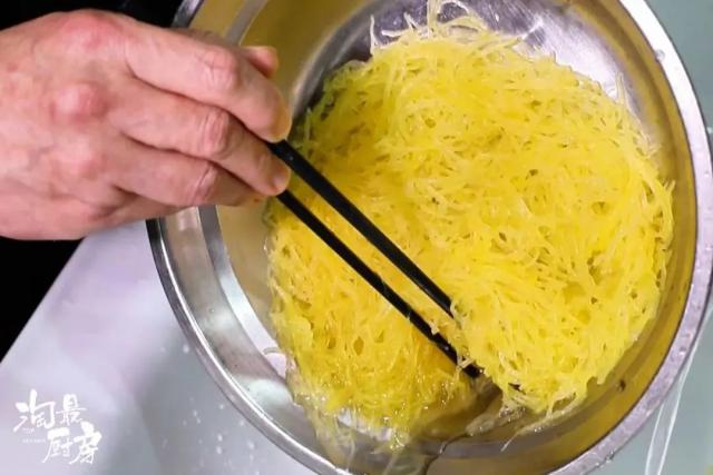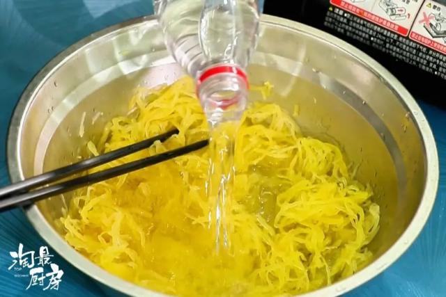 ❶ 开袋后,用清水冲洗金瓜丝。 2-3 遍。