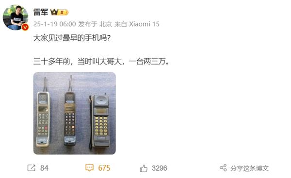 雷军晒三十多年前的“大哥大”手机:一部230000