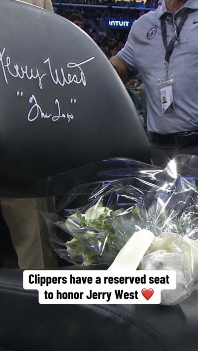 这个赛季,快船在主场留下了一个座位,上面写着杰里。 - 特别纪念老人的韦斯特名字。