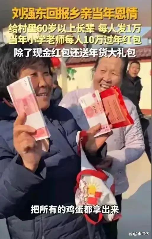 有人比较刘强东送村民年货的大手笔,吐槽朱之文的礼物是寒酸的。只是不要忘记,不管送礼的人是谁,送礼都是情分,不送礼也是责任。