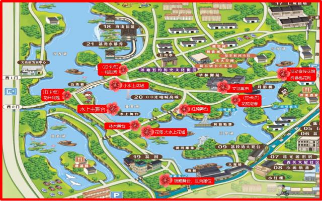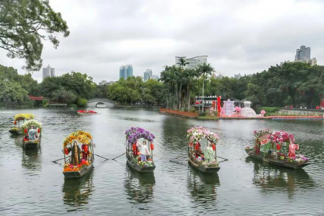 今年水上花市的布局可谓是"花漾百出"。除了过去的水上主舞台,荔湾湖公园还布置了小舞台和多个网络名人打卡点。在水上花市的三天里,水上主舞台精彩纷呈;小舞台与人们一起快乐,加上“迎春花蛇”、"大利的花是"、"一枝独秀"等待主题网红打卡点,这些艺术装置将吸引无数游客前来打卡,成为春节期间网红的热门场所。