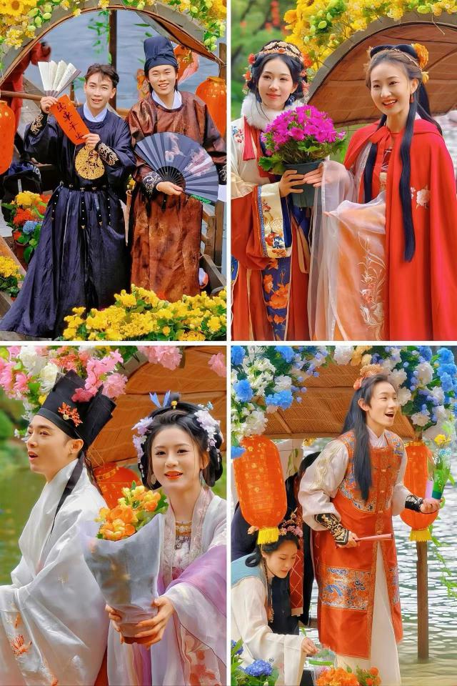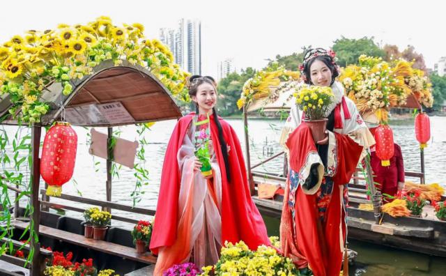水花市民俗体验区,充满了各式各样有趣的民俗活动。西西穿着旗袍,西关小姐乘坐黄包车,沿着公园打卡流线互动,与群众合影,达到目标还可以得到一份小礼物。穿着衣服岭南水乡服饰我的小哥哥和小姐姐将在荔湾湖公园沿湖出售各种渔灯和鲜花,并以独特而有感染力的喊叫声吸引游客。他们热情地向游客介绍不同花卉的含义和适合赠送的目标。最值得期待的应该是粤剧粤曲演员的巡游互动,把岭南文化的精髓带到花市。