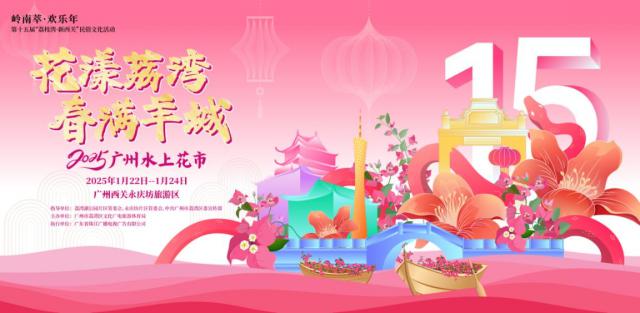 广州水上花市就像一朵逐渐盛开的花,每年都有独特的香味和色彩。它不仅是岭南文化的盛大展示,也是传统与现代交织的华丽运动。2025 2008年,广州水上花市即将迎来第十五届盛典。今年,"花漾荔湾,春满羊城"以广州水上花市为主题的活动,将在 1 月 22-24 日本在广州西关永庆坊旅游区荔湾湖公园举行,此次水花盛会也将开启荔湾永不落幕的花市序幕,值得期待!
