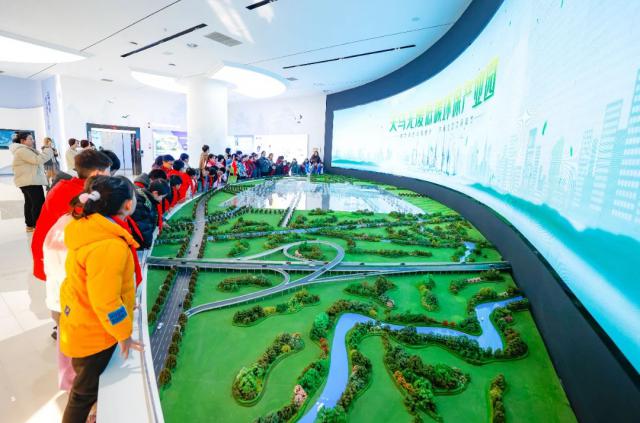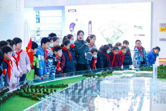 随后,学生们来到一楼环保展厅,一个等比例缩放的沙盘模型引起了大家的关注。在讲师的逐一讲解下,学生们对垃圾焚烧发电的整个过程有了详细的了解,包括垃圾的收集、运输、处理、焚烧和发电。