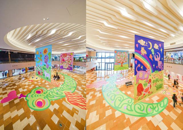 兴业太古汇联合超媒体集团艺术家龙荻合作,将艺术家手绘作品与 AI 技术融合,用一系列公共艺术装置,创造节日创意。通过这个公共艺术项目,兴业太古汇和艺术家龙泉共同构建了一个色彩斑斓、充满活力的艺术空间,在这里汇聚了充满美好祝愿的吉祥元素,呈现了春风吹过城市、万物焕发活力的场景,意味着春天的气息、灵感、财富和好运不断涌现。