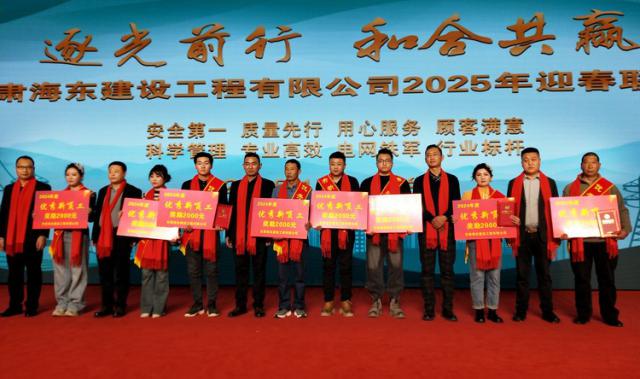 联谊会上,中国民生银行兰州天水路支行授予甘肃海东建设工程有限公司“优质民营企业客户”奖牌;甘肃海东建设工程有限公司表彰公司 2024 年度“优秀员工”和“优秀新员工”。