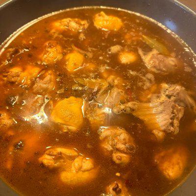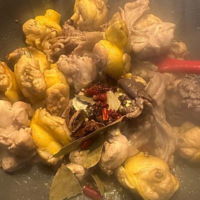 11、倒入沸水,漠鸡兔肉,开水,中火炖半小时。