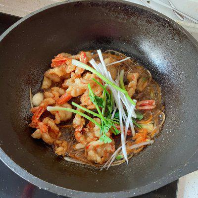 10、放入虾仁中,放入葱丝和香菜提鲜