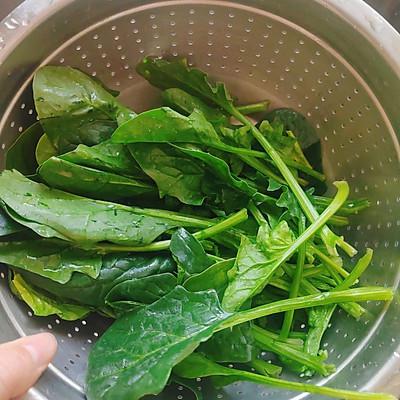 1、采摘菠菜,洗净