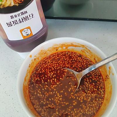 7、韩国拌饭酱或韩国辣酱都可以。如果直接用,味道不是很好。我喜欢再加工一次。拌饭酱、酱油、香油、芝麻、水、蜂蜜,加在一起,冷拌均匀。