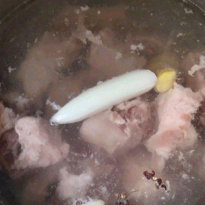 1、将排骨洗净冷水放入锅中,锅中放入葱段、姜片、米酒两勺,水煮三五分钟。