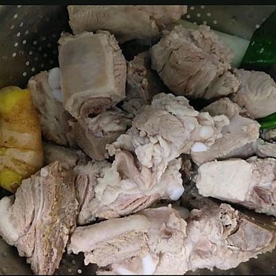 7、锅里加水没有排骨和萝卜,加一勺酱油,一片姜片,盖上文火闷。 20 一分钟,半途开盖翻动一下。