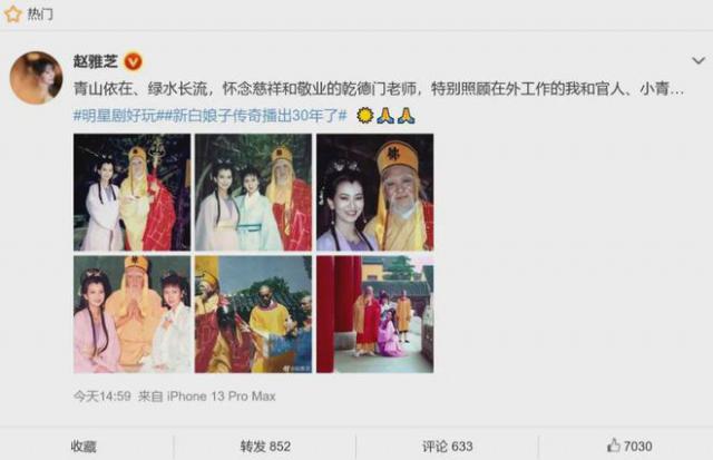 2022 年 11 月 5 日,《新白娘子传奇》播出 30 周年纪念日,“白娘子”赵雅芝拍了一组照片纪念,引起了一波记忆杀戮。“青山依在,绿水长流,怀念慈祥敬业的乾德门老师,特别照顾我和在外工作的官员。 ... "