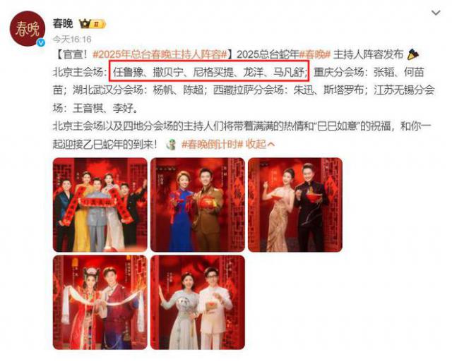 这不,1 月 19 日本,央视正式宣布蛇年春晚主持人阵容。